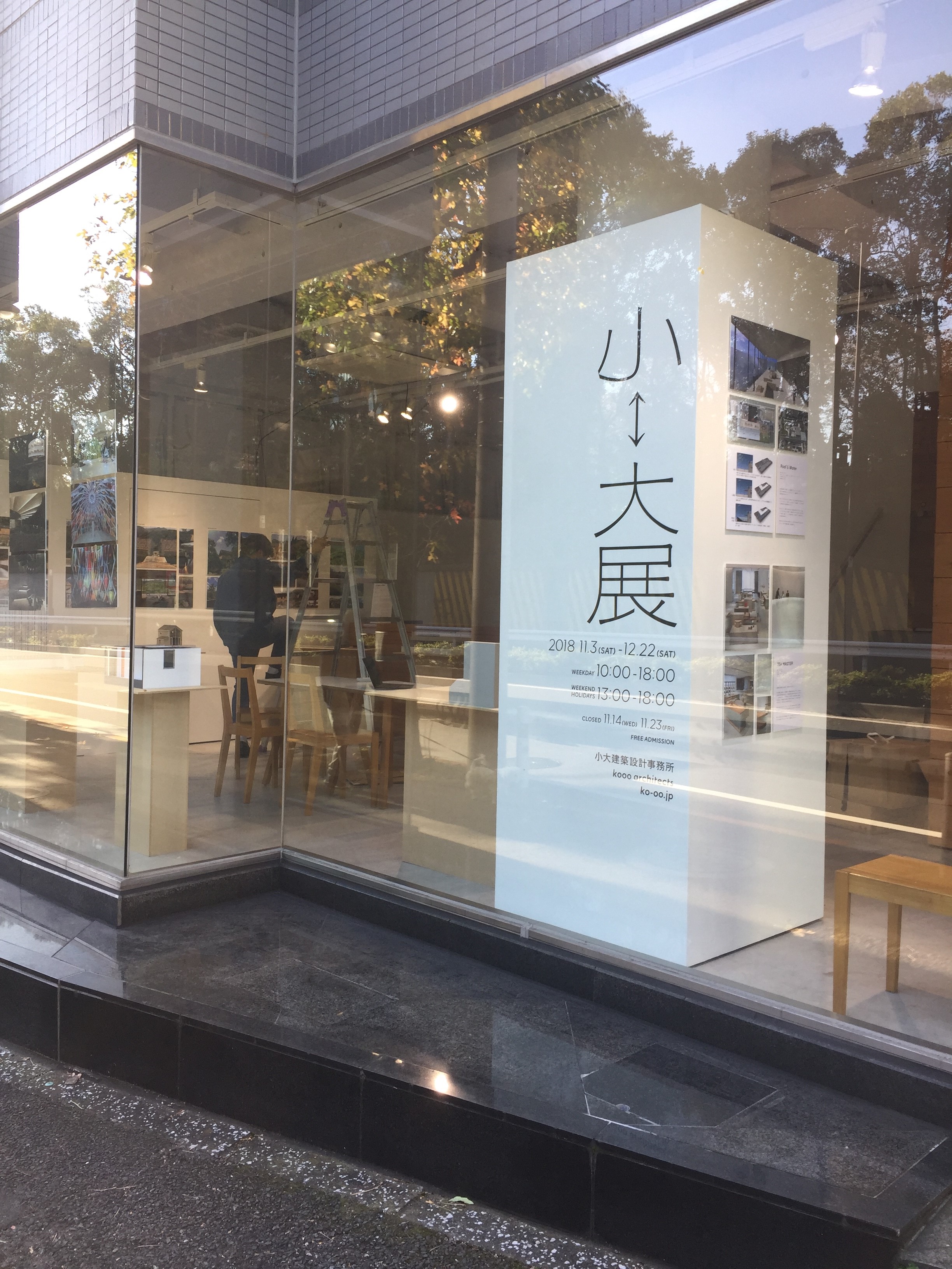 in the PARK店内の一部で、小大in the PARKという展覧会が開催中です。本案件の設計プロセスの展示の他、弊社の計画中、竣工案件を模型を中心に展示しております。