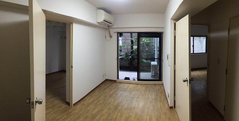 改修前の間取りは小さく3つの部屋に分節されていて、どの部屋も少しだけ閉塞感があった。この2DKの間取りを、大きな居間兼仕事部屋と小さな寝室という2つの部屋へ変更した。