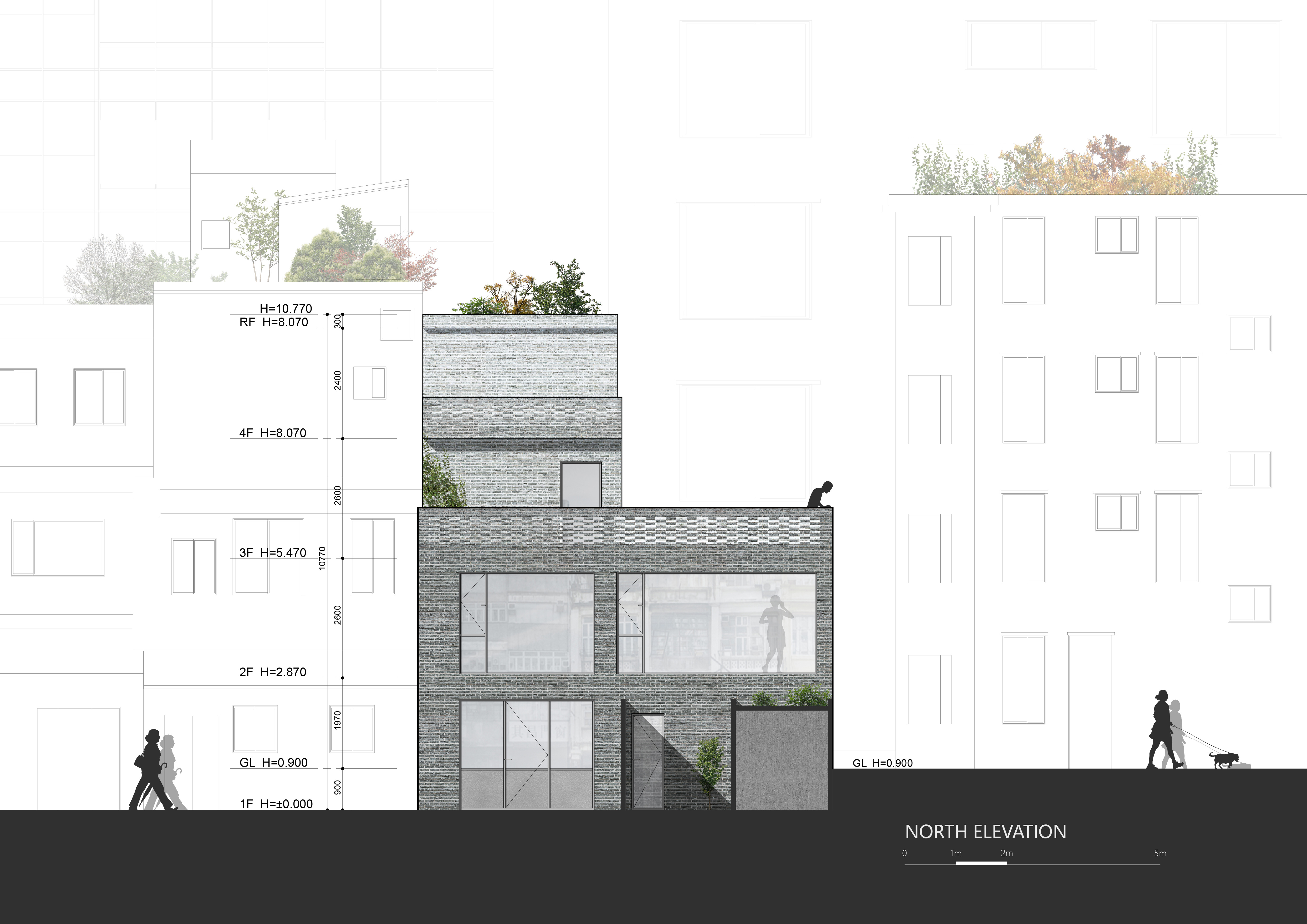 In order to echo with the environment of its surrounding traditional residences, we intentionally kept the historical gray bricks on the existing façade. Additionally, we adjusted the windows and doors in increments of several centimeters considering the overall proportion of the building and interior layout, letting in more view and light. The revision to metal frames and increased depth of the sill added more spatial immersion.