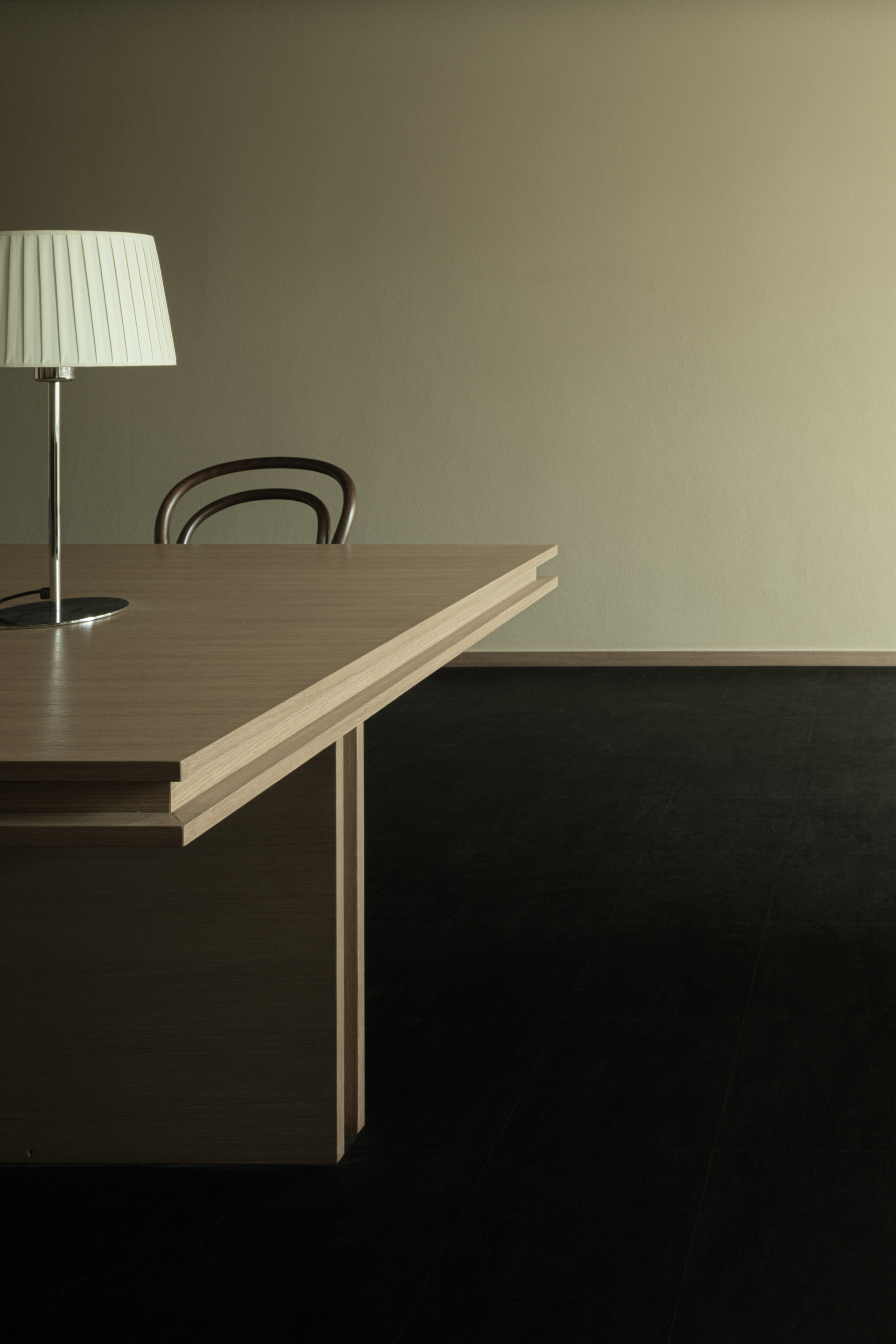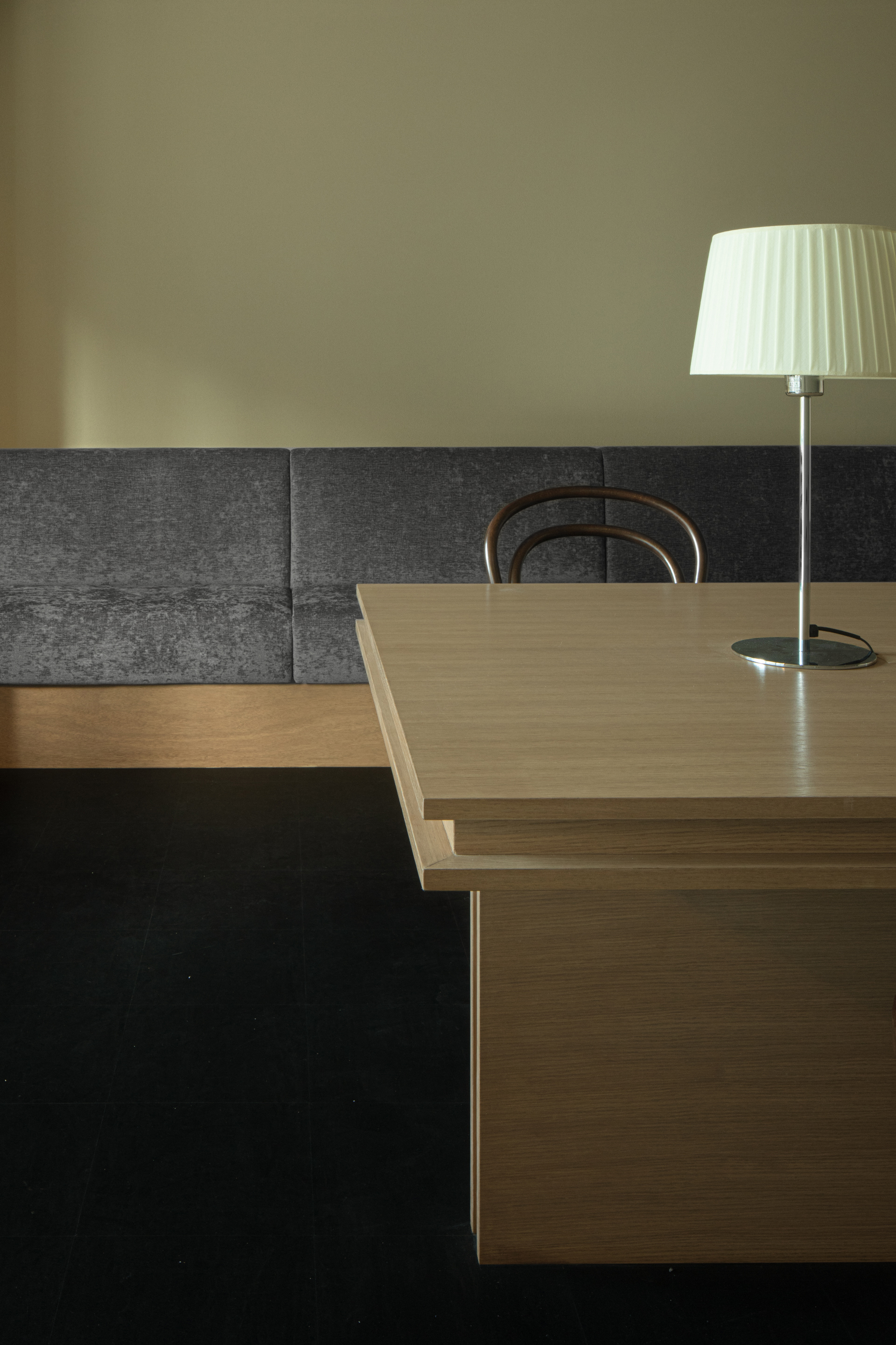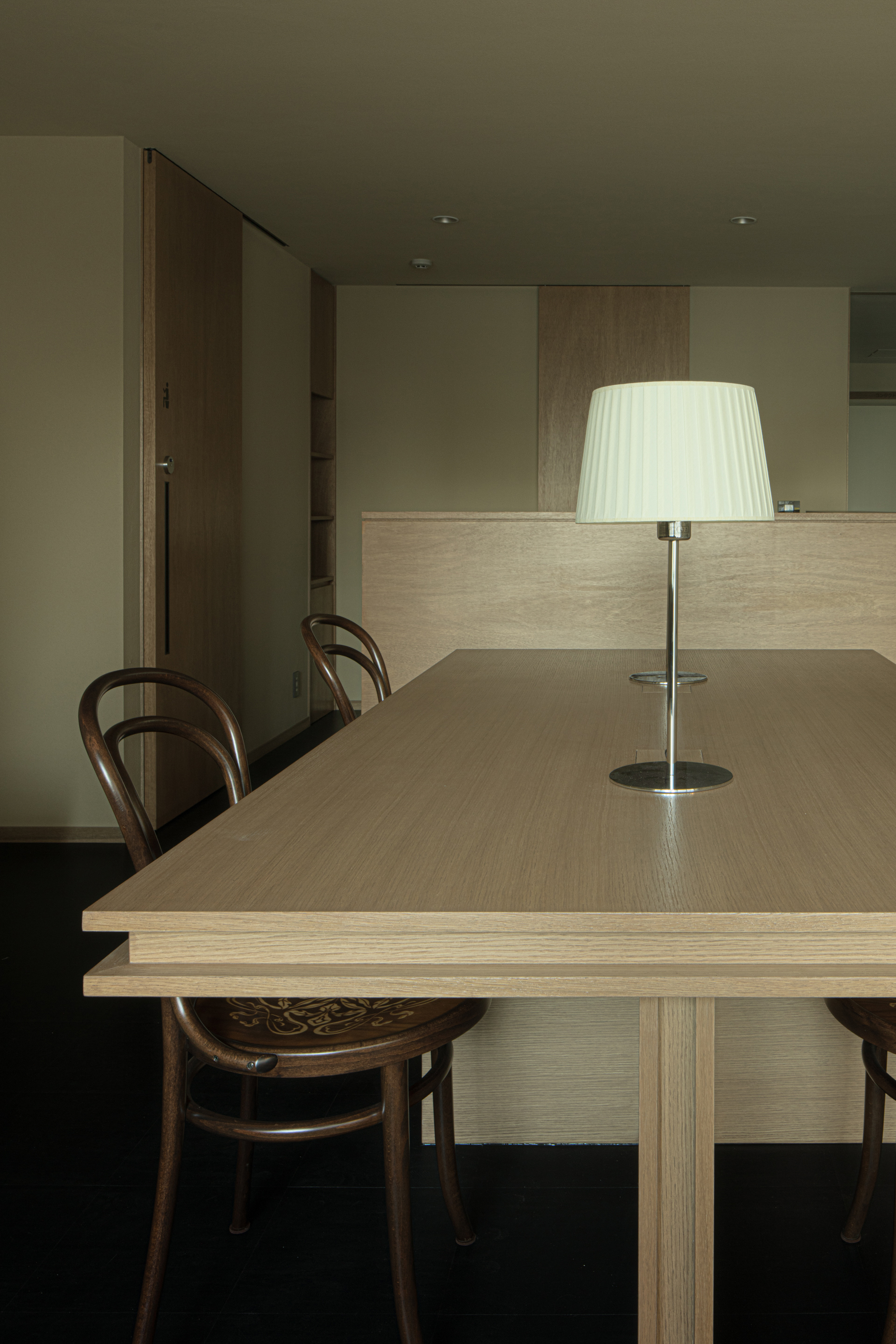 这些灯光的柔晕映射在具有湿度调节功能的手工硅藻泥墙面上,带来细致的光影效果。