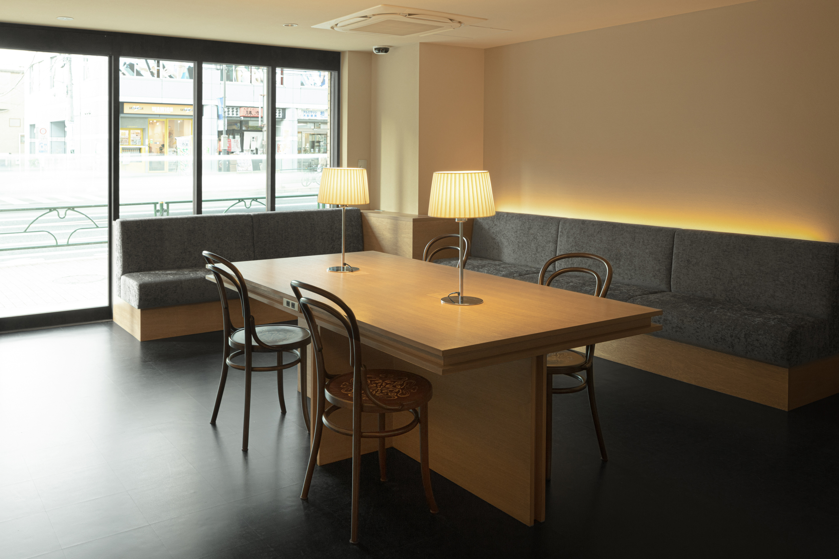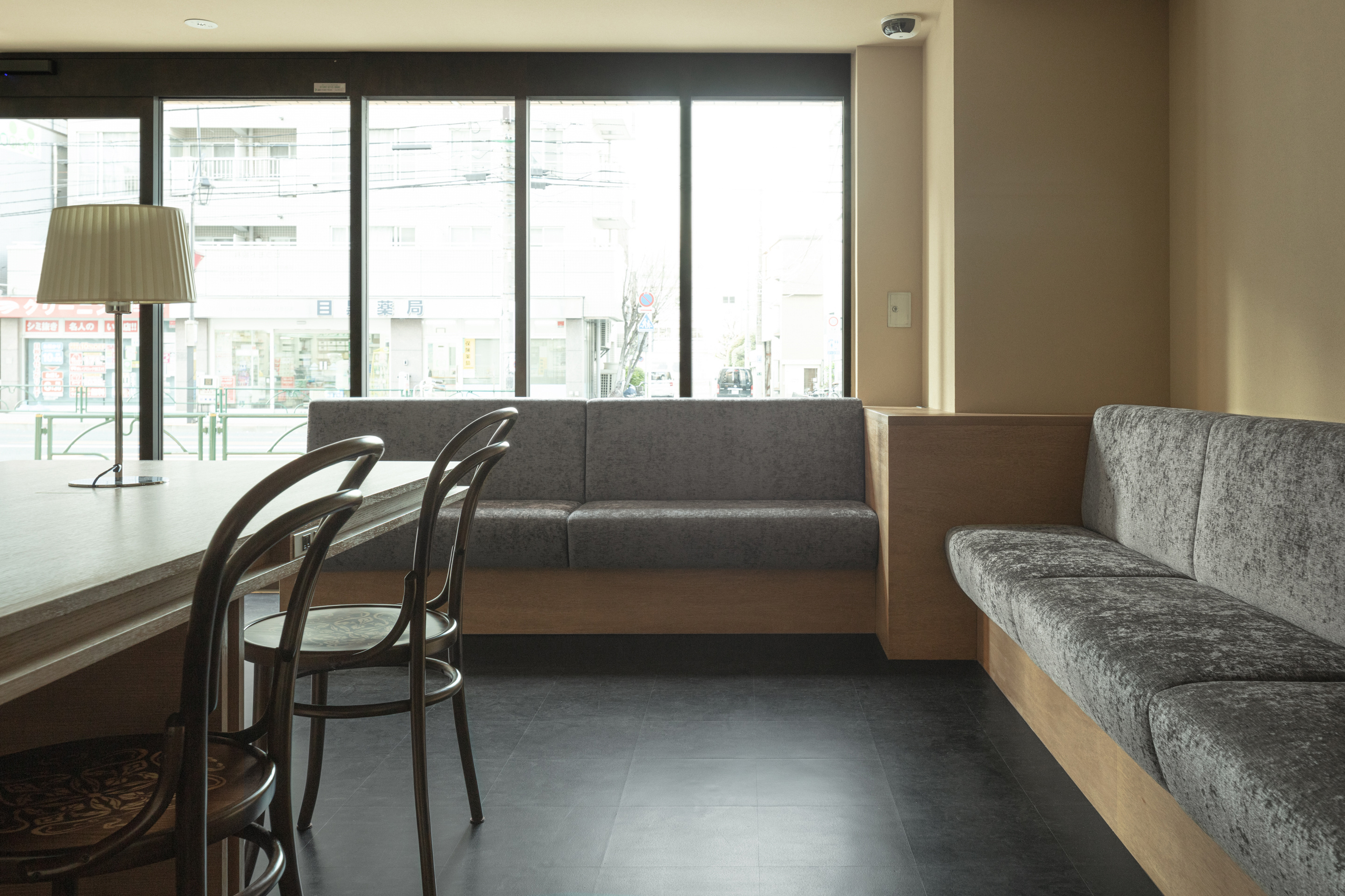 待合室には診察の待ち時間に、各々が居心地良く過ごせるように、中央に大きなテーブルを1つデザインした。大きなテーブルが1つあることで、患者さん待合時間の過ごし方に幅が生まれる。