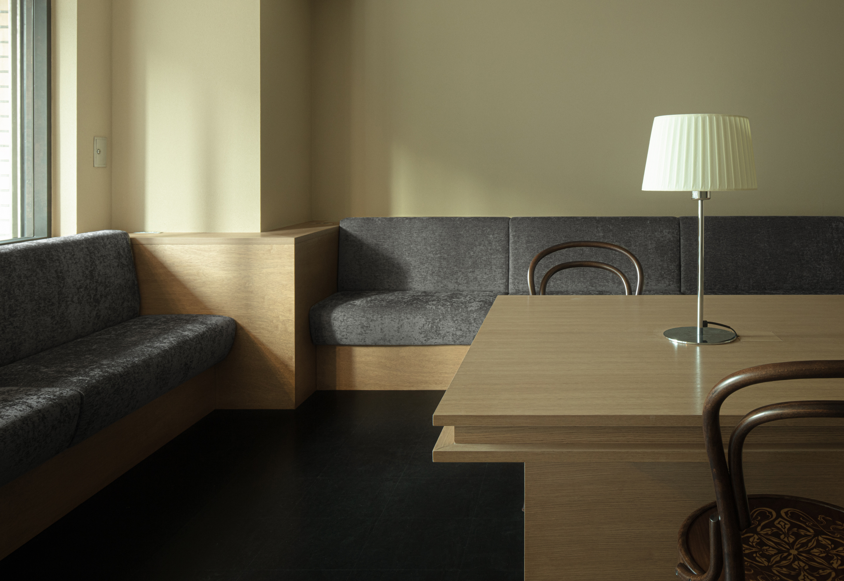 考虑到过强的光线会影响患有眼疾的患者,我们设计的空间主要利用了间接照明和桌面重点照明来解决这一问题。通过使用调光功能和灯罩,适当的光线明暗度不会对眼睛带来额外的负担。