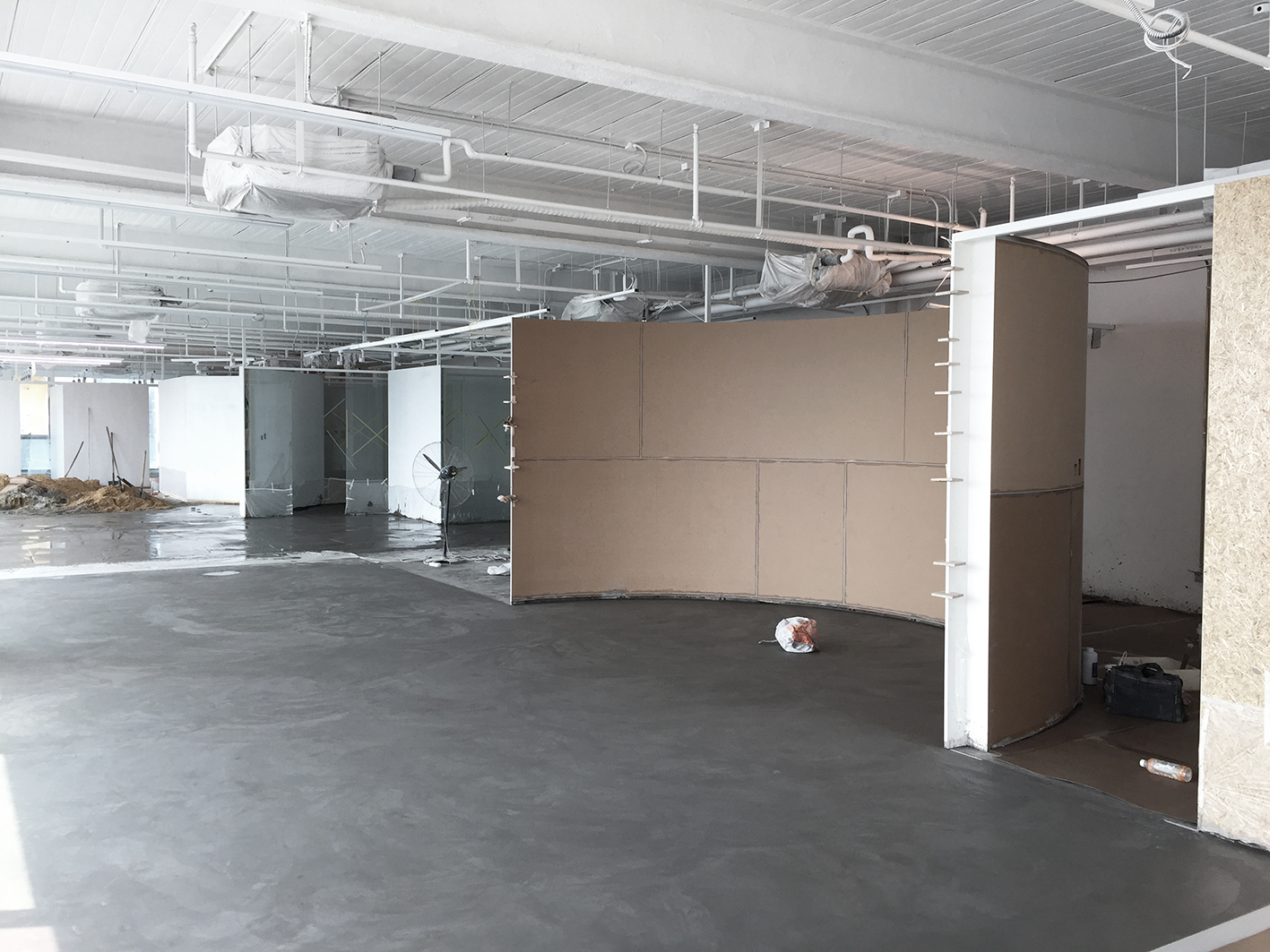 そんな風に、幾何学が無意識に人々に与える影響を、家具のような小さいスケールから、空間を形成する壁・天井のスケールまで、その効果(心理効果、遮音効果、視覚効果)を注意深く読み取り、丁寧に線を引いていった。